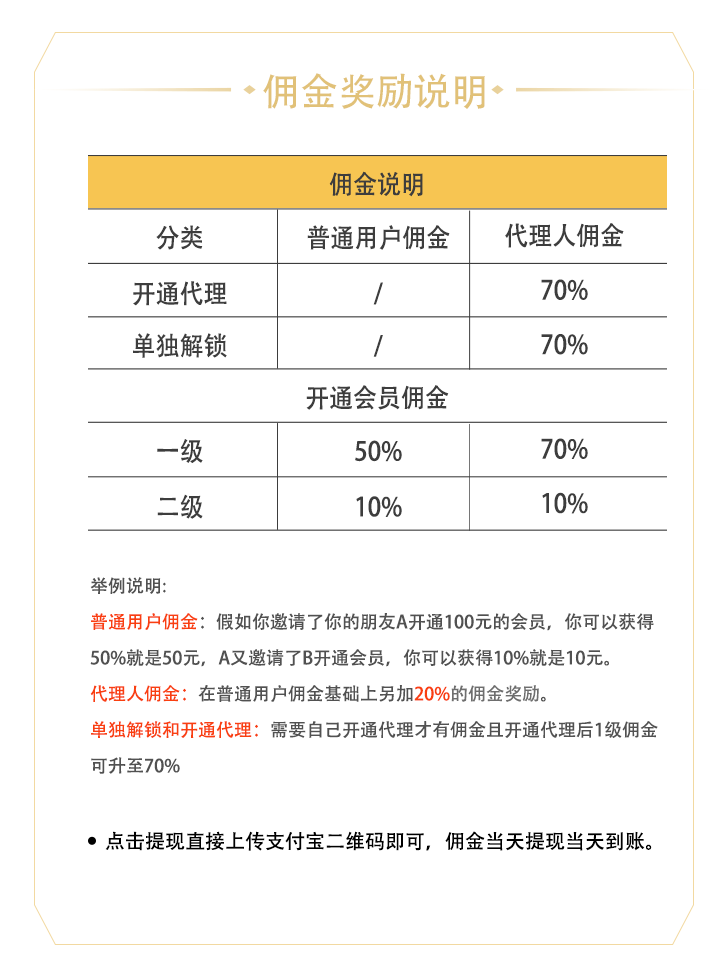 任意佣金随时提现100%到账,无套路。点提现按钮上传支付宝即可提现!